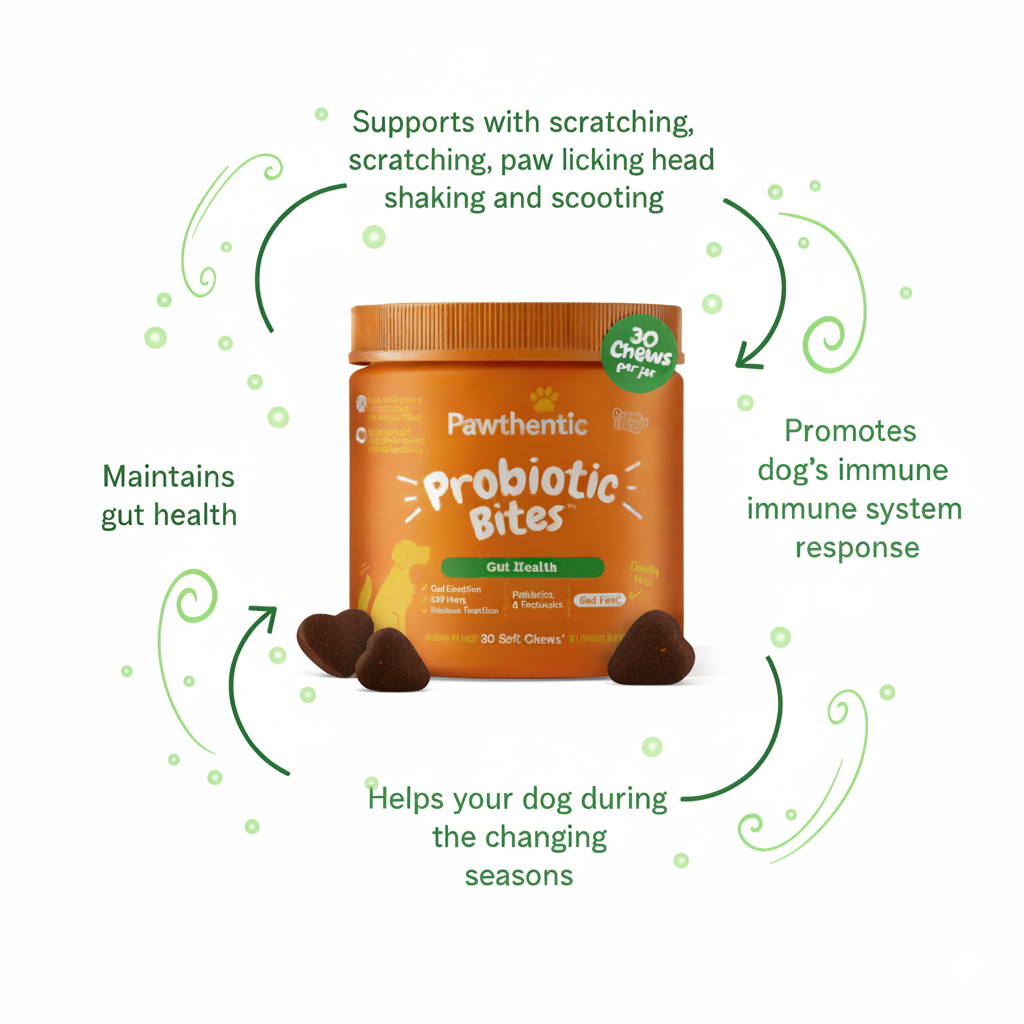 Yes! Our probiotic blend supports your dog’s gut and immune system, which can reduce discomfort from scratching, paw licking, and seasonal changes.